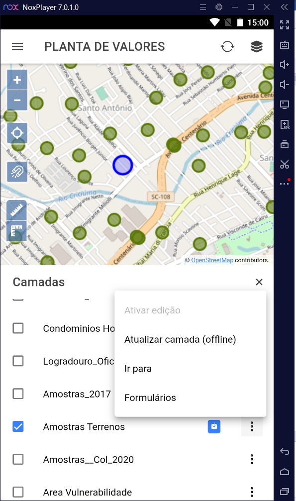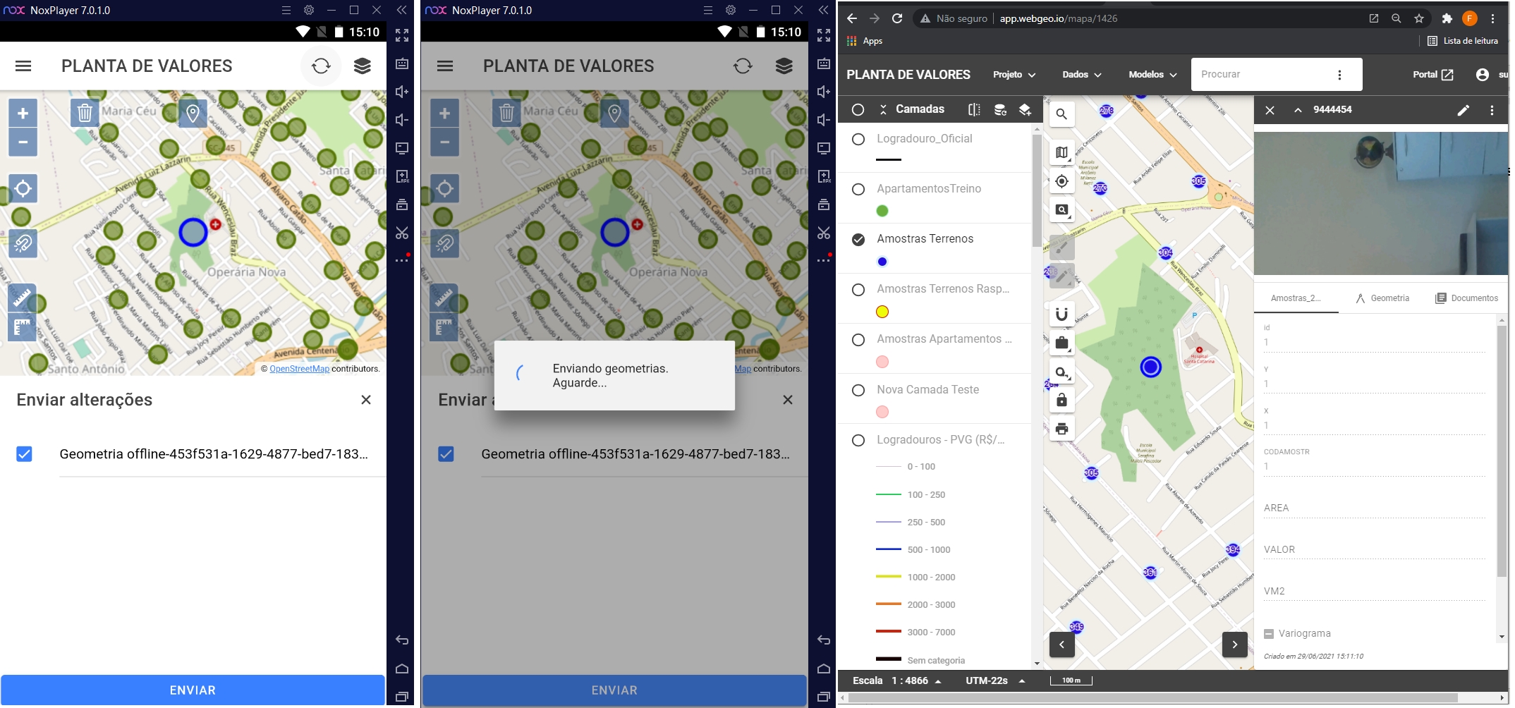 Sincronização e envio dos dados (geometrias, atributos e fotografias) coletadas para o respectivo projeto no webgeo