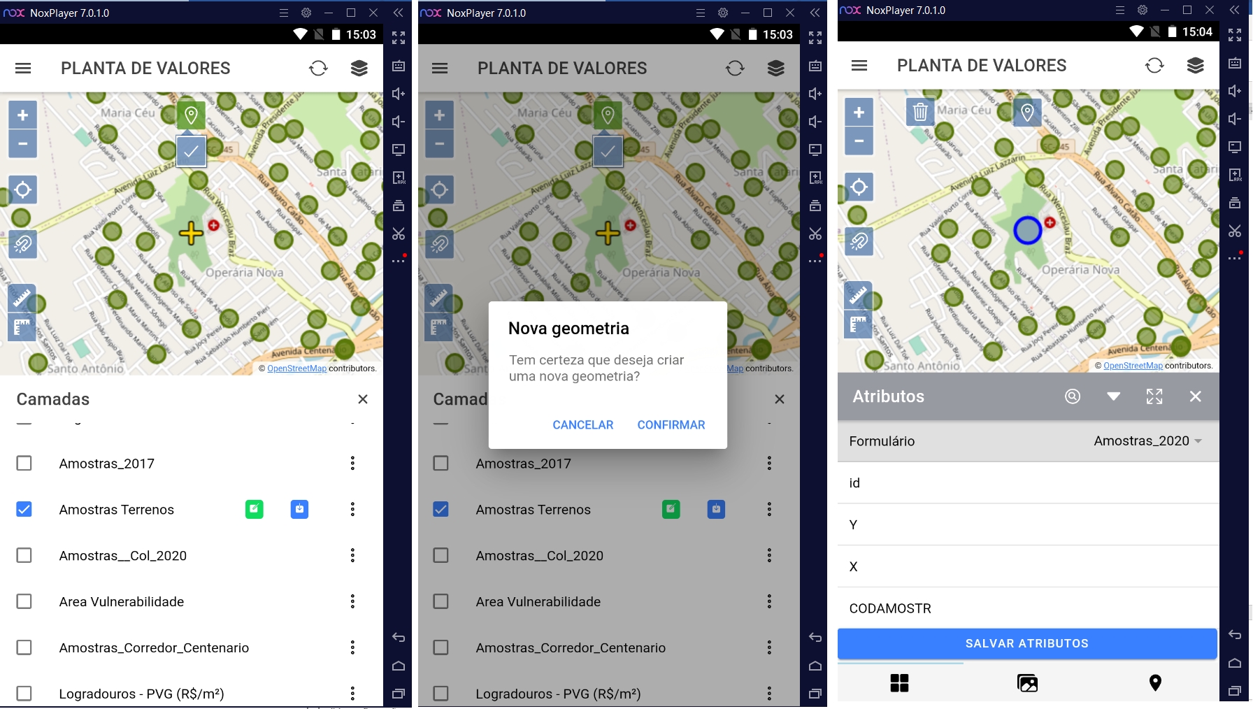 Baixe o APP no dispositivo móvel. Acesse os dados de seu projeto. Desenhe e edite geometrias com precisão. Registre e vincule fotos e documentos. Envie seus dados.