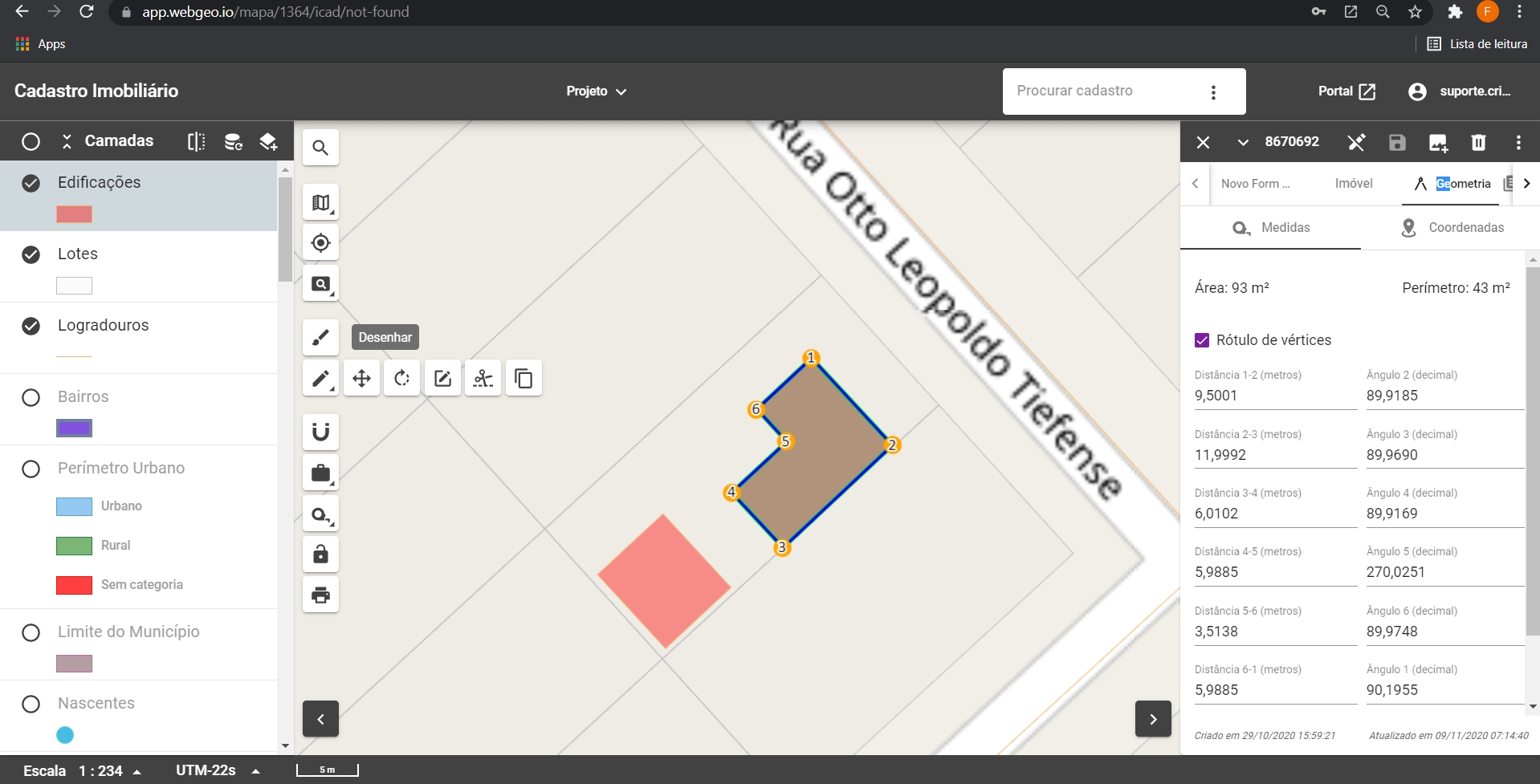 Edição de geometrias de polígonos: mover, rotacionar e excluir, adicionar e remover vértices.