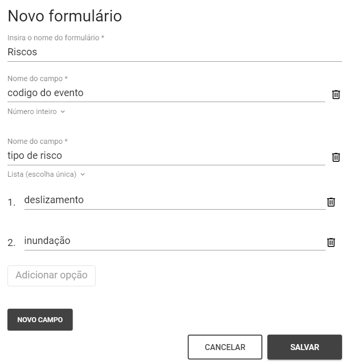 Criação e edição de múltiplos formulários dinâmicos por camada
